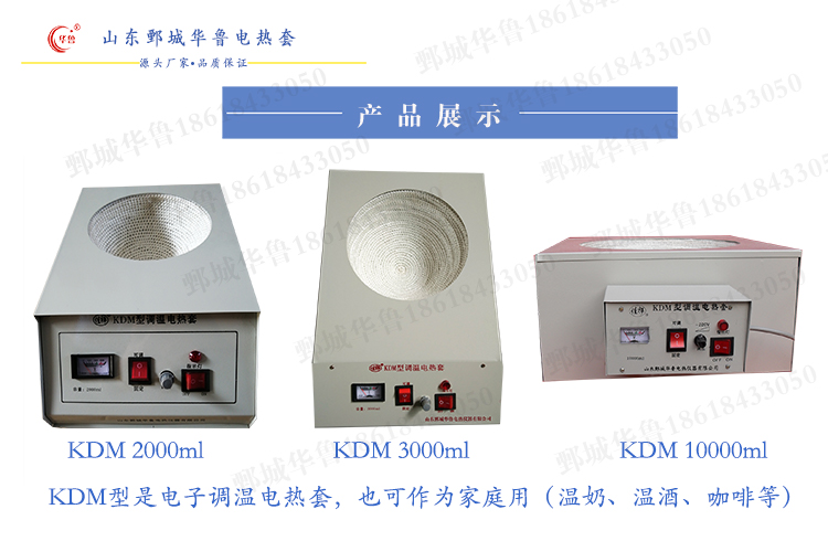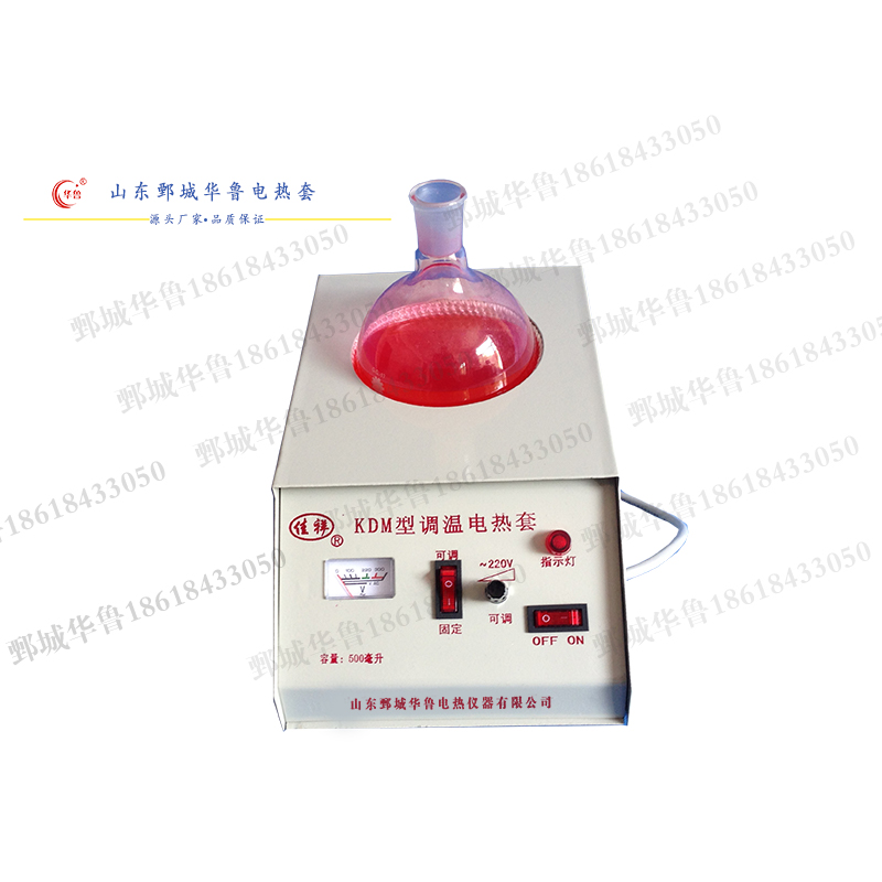 KDM型可调控温电热套技术指标 规格:100,250,500,1000,2000,3000,5000,10000毫升 使用电压:220V 50HZ 最高温度:380℃ 电压控制:50V-210V