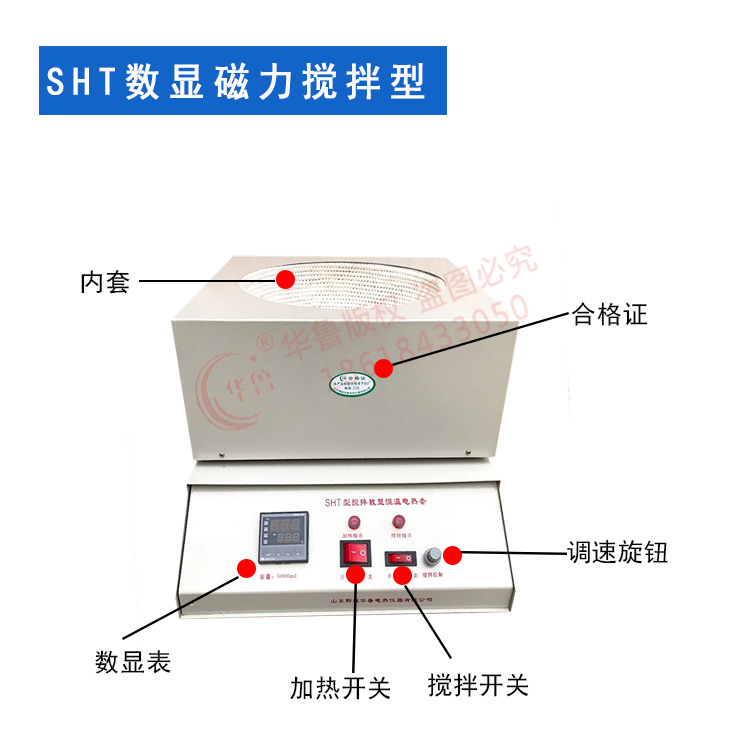 外壳采用冷轧板冲压焊接,表面静电喷涂工艺处理。电子调温加热、磁力搅拌,具有加热面积大、升温快、温度高、无明火、加热均匀、节能、操作简便、经久耐用、使用效果好、不易碰伤玻璃器皿等优点;加热与搅拌可同时进行,无极调控功能;智能数显式仪表控温、精度高、性能稳定。
